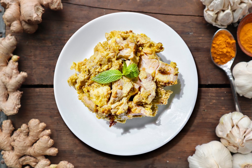 Satay-marinated chicken, cooked to juicy perfection, delivers a rich, smoky flavor with every bite. The marinade infuses the chicken with a blend of spices, creating a tender, flavorful dish that’s both satisfying and full of aromatic warmth. 🍛