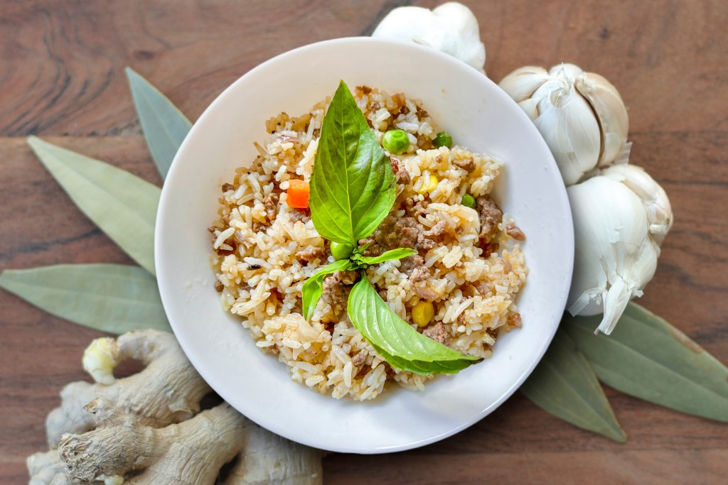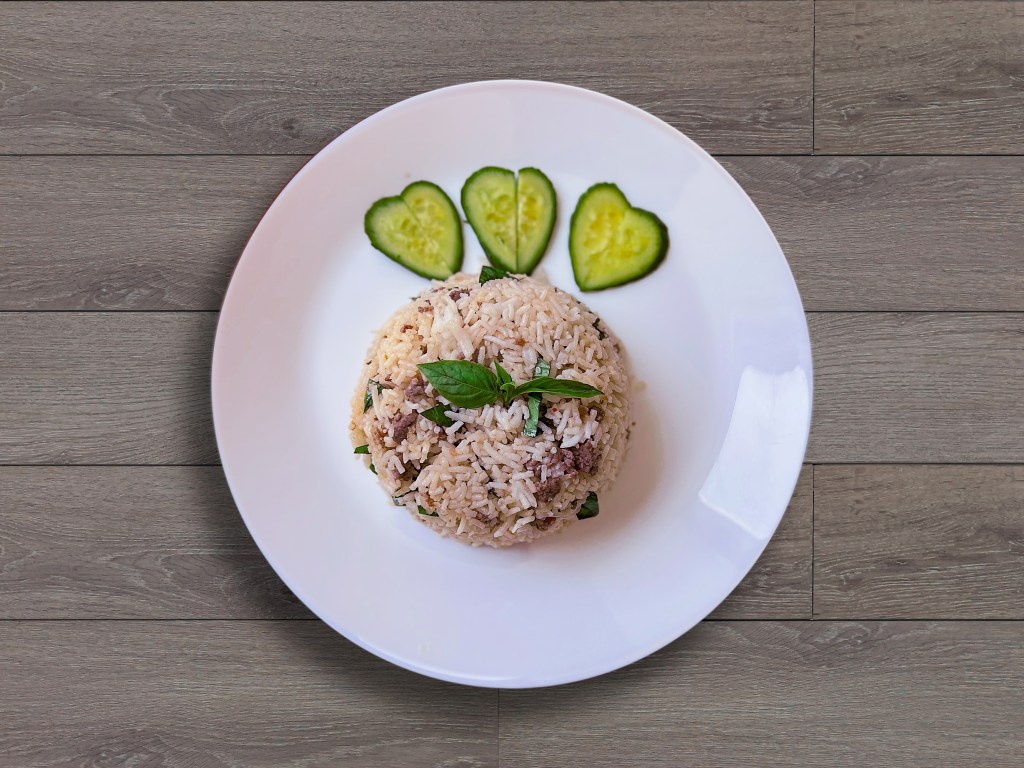 This fried rice with tender beef, aromatic garlic, and fresh basil is the perfect lunch or dinner. A satisfying and flavorful meal, it’s a delightful combination of savory beef and fragrant herbs, making it a go-to dish for any time of day. 🍛